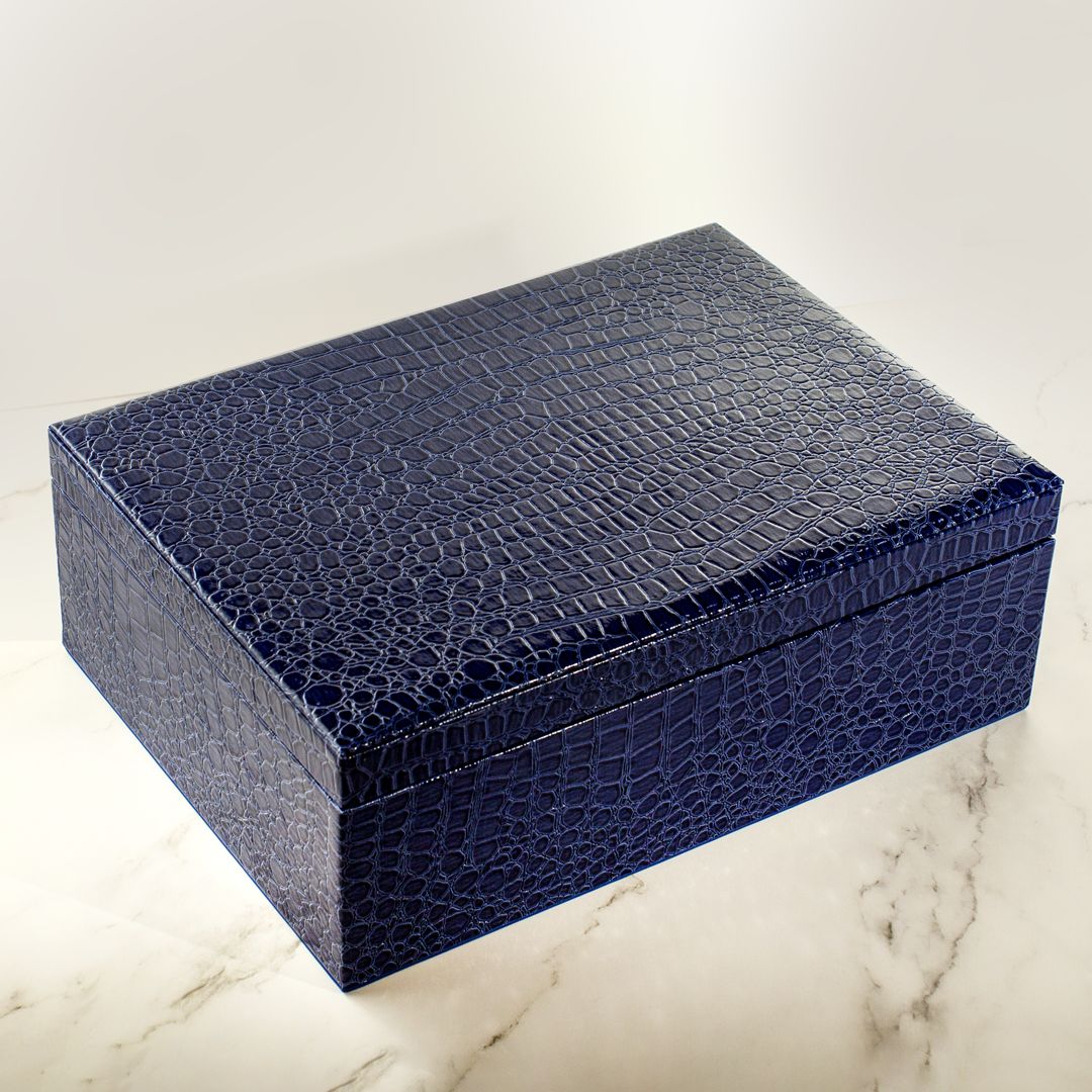 صندوق فخم من الخشب المغطي بالجلد الازرق-